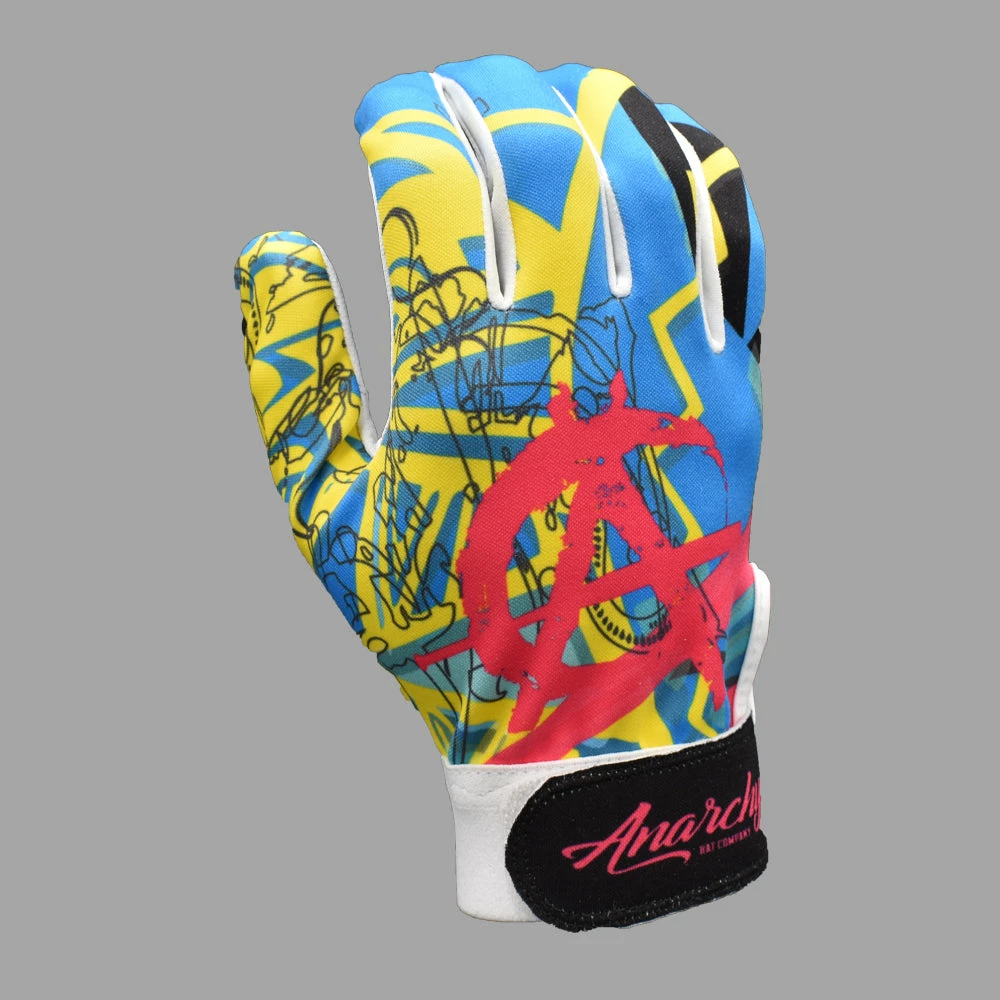 Anarchy Bats Anarchy Premium Batting Gloves- Abstract Blue/Yellow/Pink